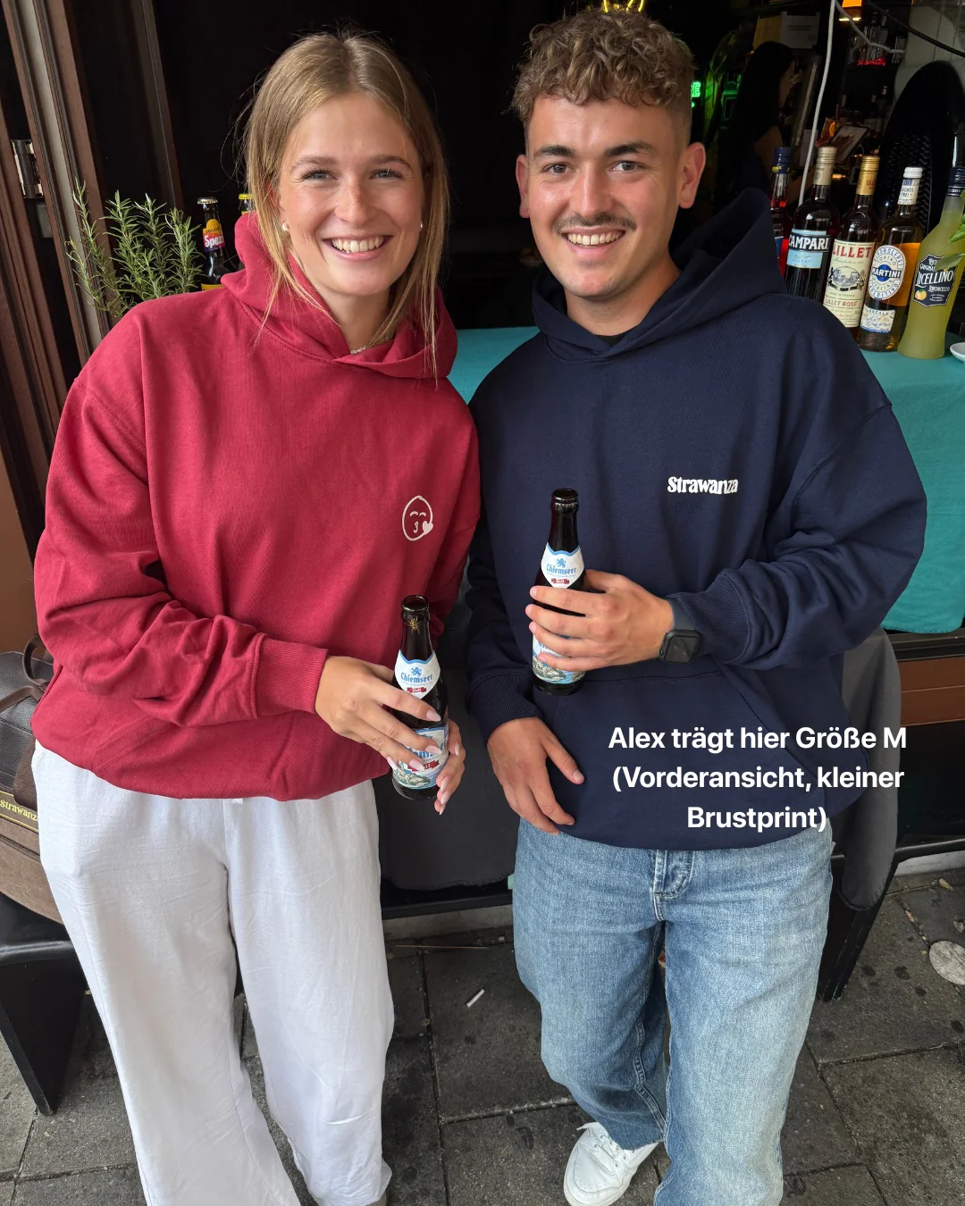 - Models tragen Größe S und Größe M auf den Fotos